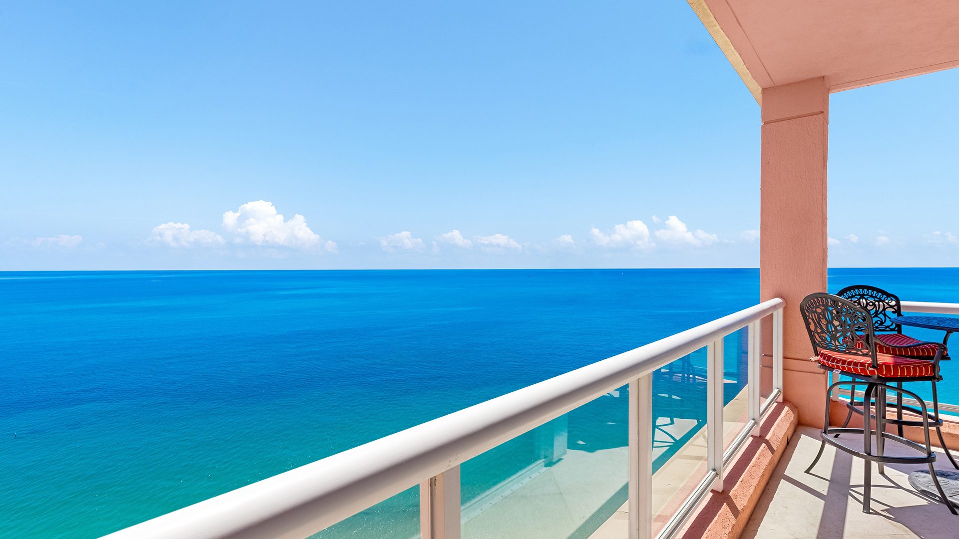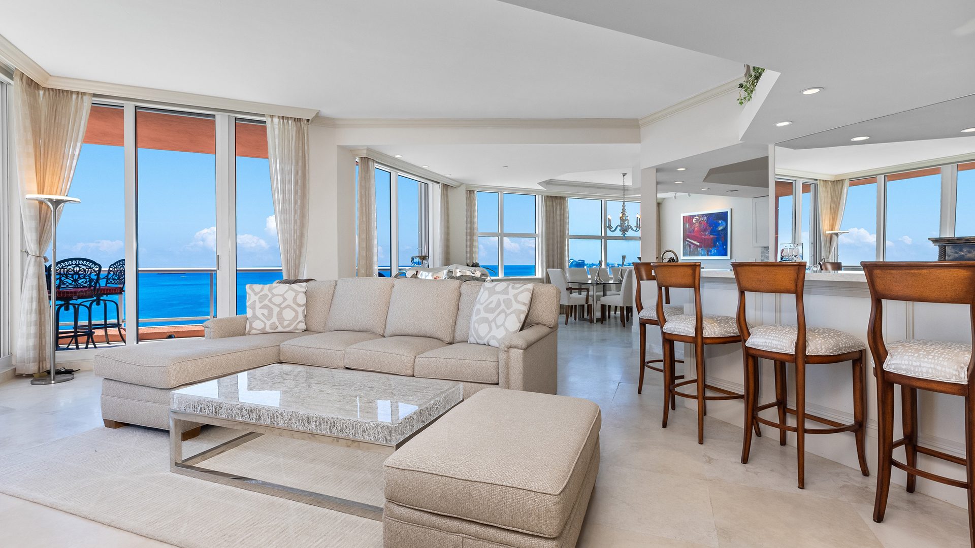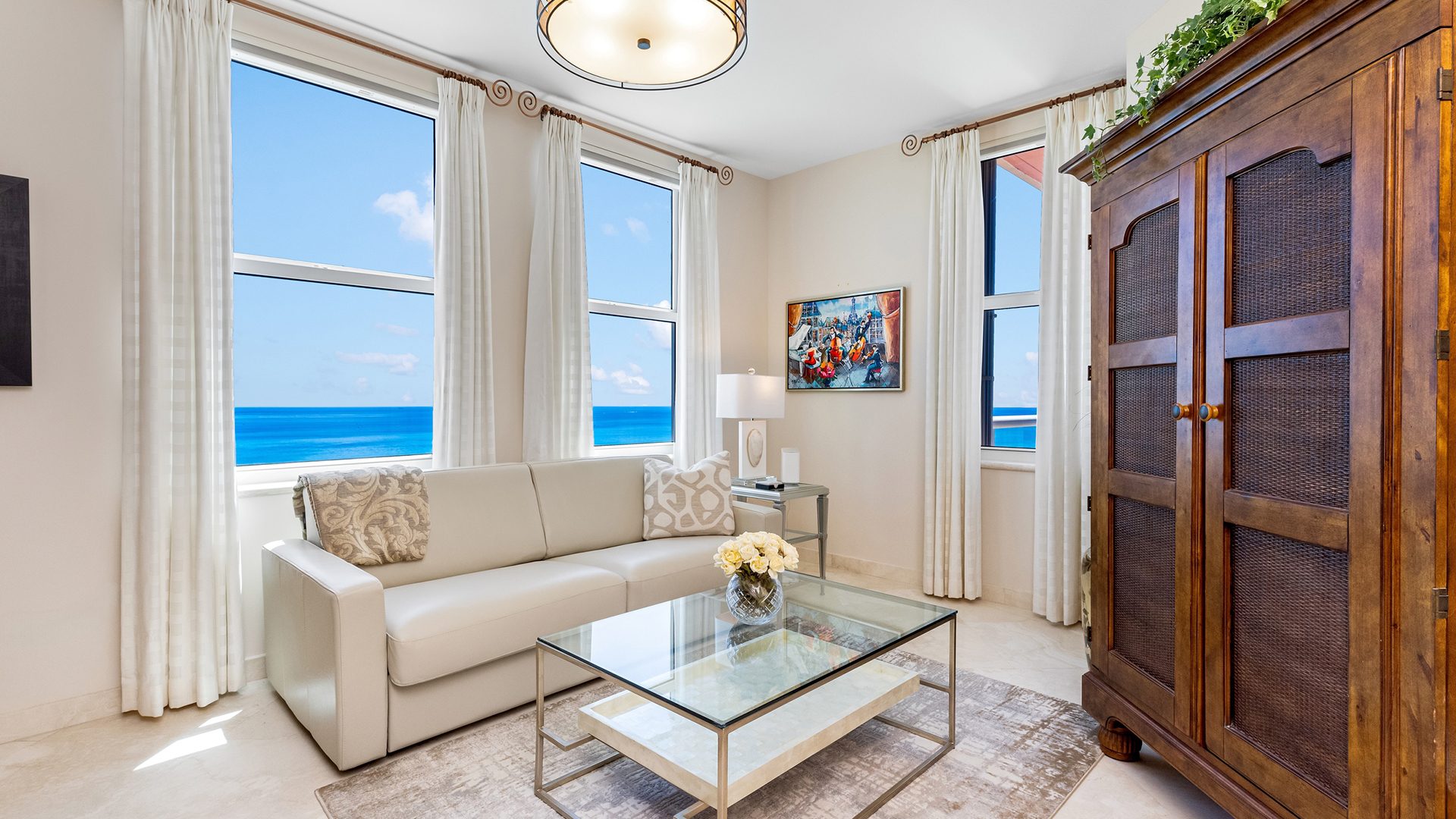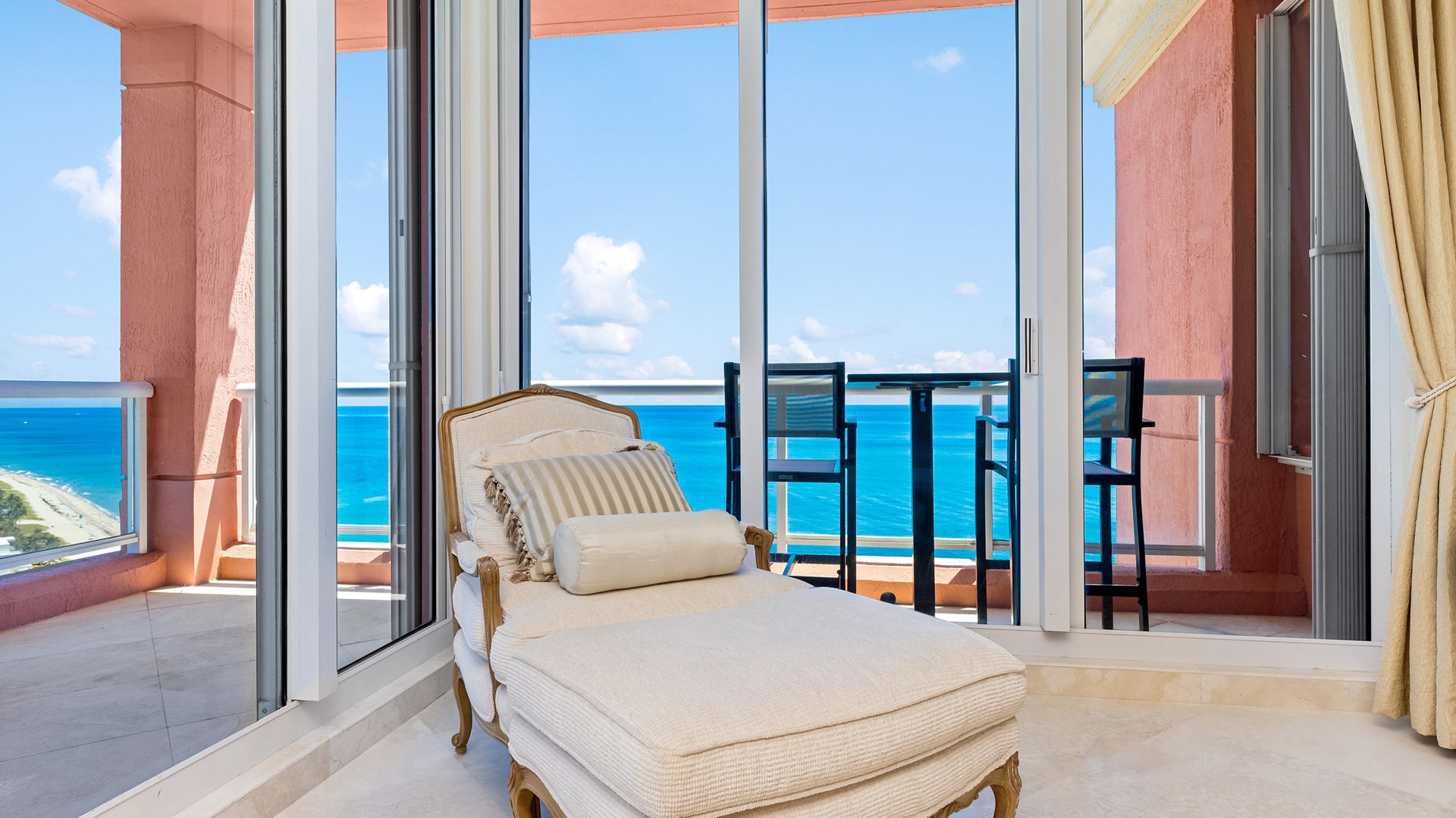 Floating high above the Atlantic on the 24th floor, this stunning sub-penthouse residence at The Palms Tower Two offers panoramic ocean views and a lifestyle defined by sophistication and serenity. Featuring the desirable East Florence floor plan, this beautifully furnished 3-bedroom, 2.5-bath condo is bathed in natural light from walls of windows that frame the vibrant colors of the sea and sky.