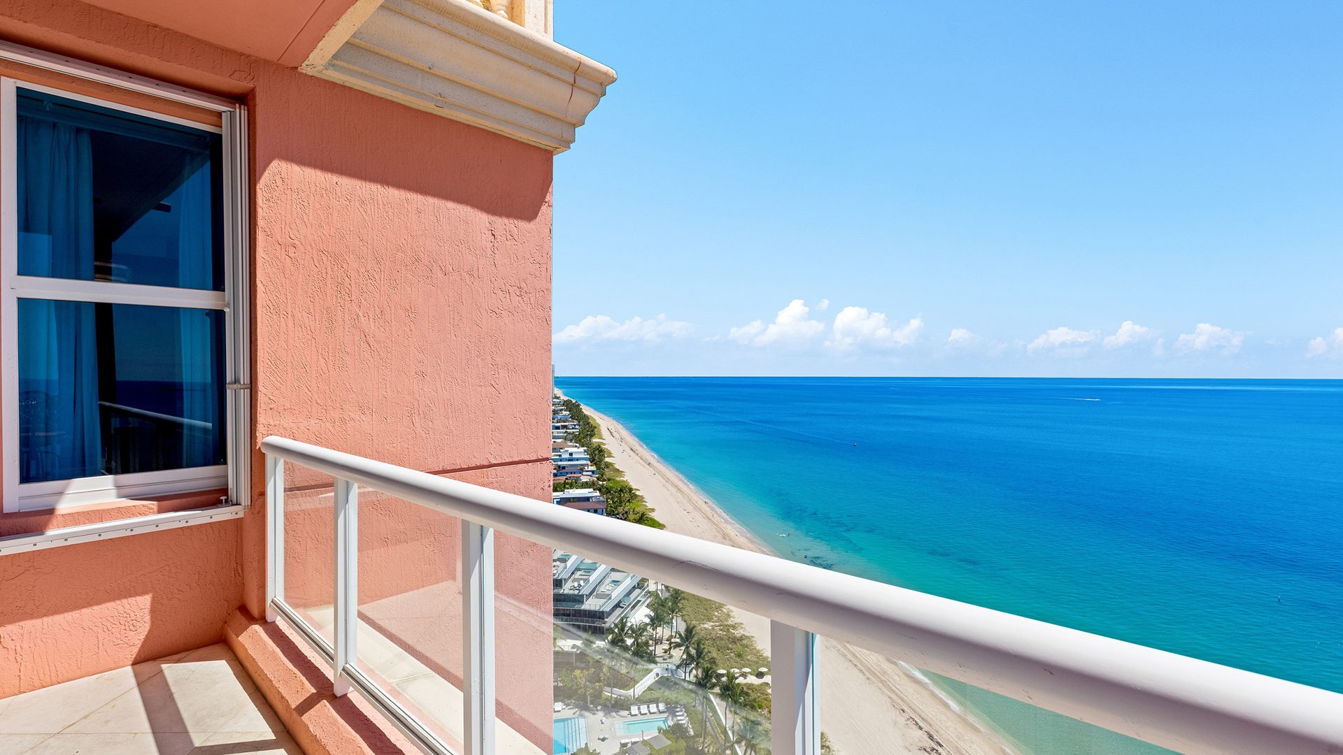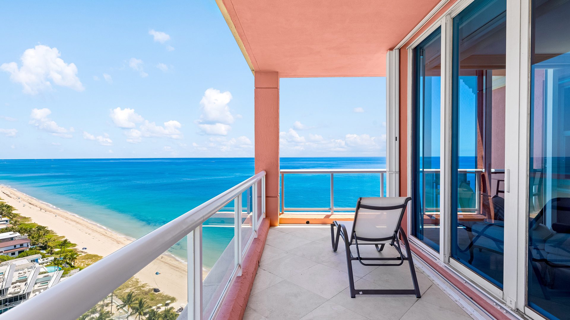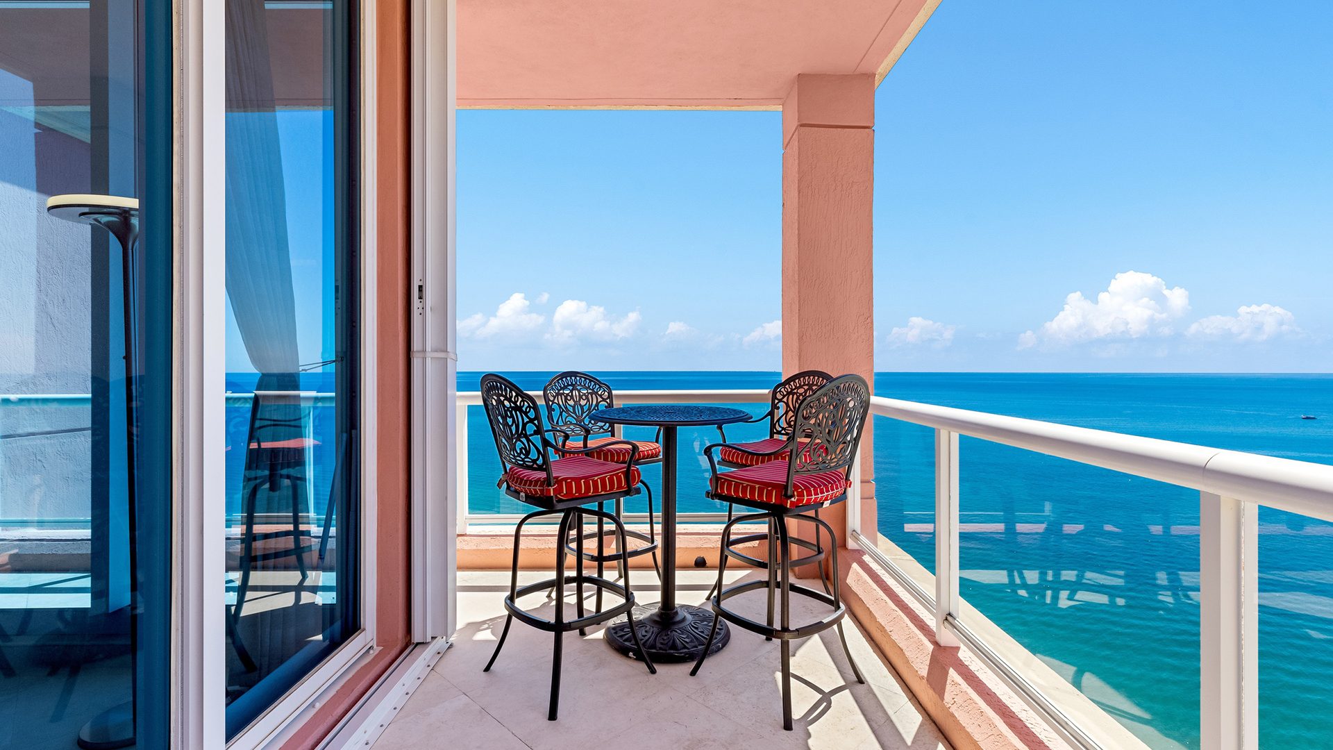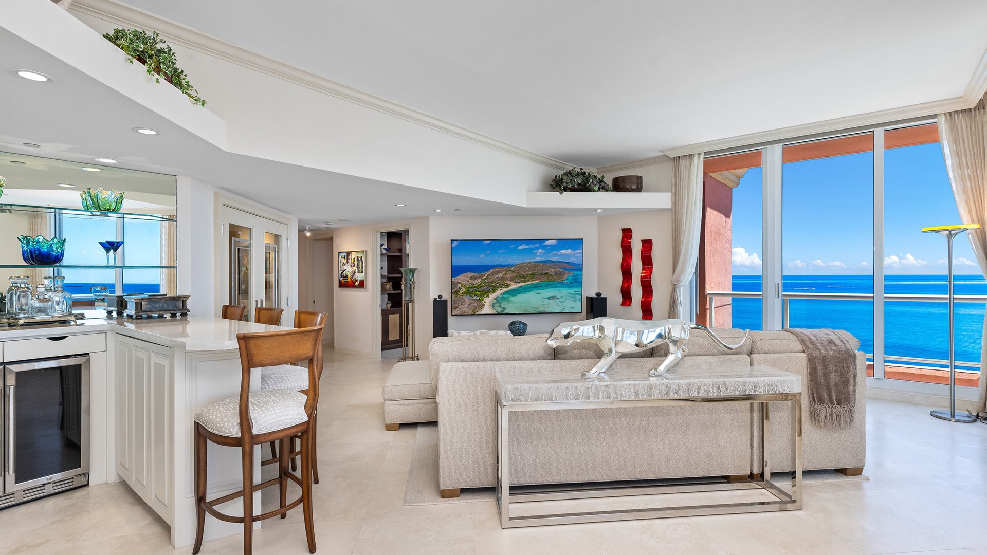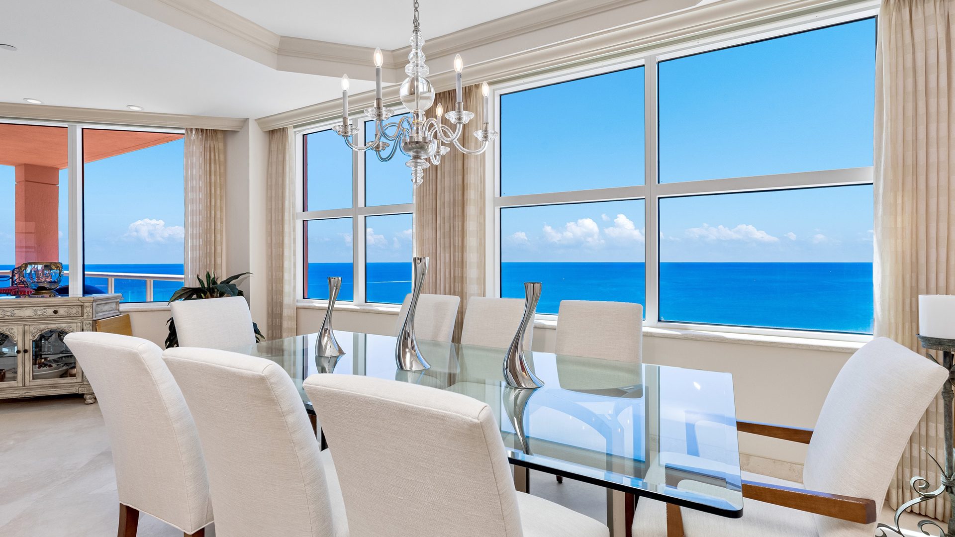 Floating high above the Atlantic on the 24th floor, this stunning sub-penthouse residence at The Palms Tower Two offers panoramic ocean views and a lifestyle defined by sophistication and serenity. Featuring the desirable East Florence floor plan, this beautifully furnished 3-bedroom, 2.5-bath condo is bathed in natural light from walls of windows that frame the vibrant colors of the sea and sky.