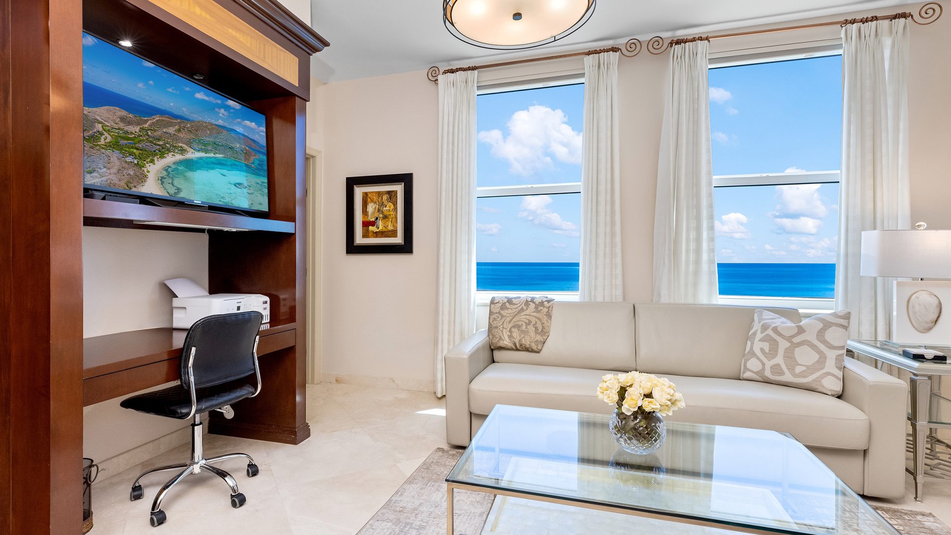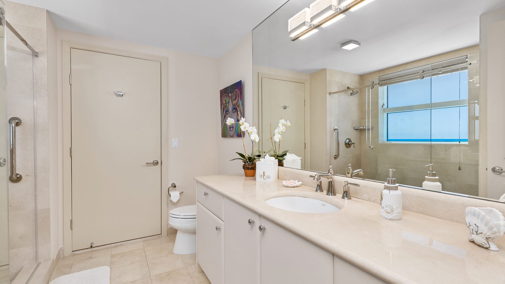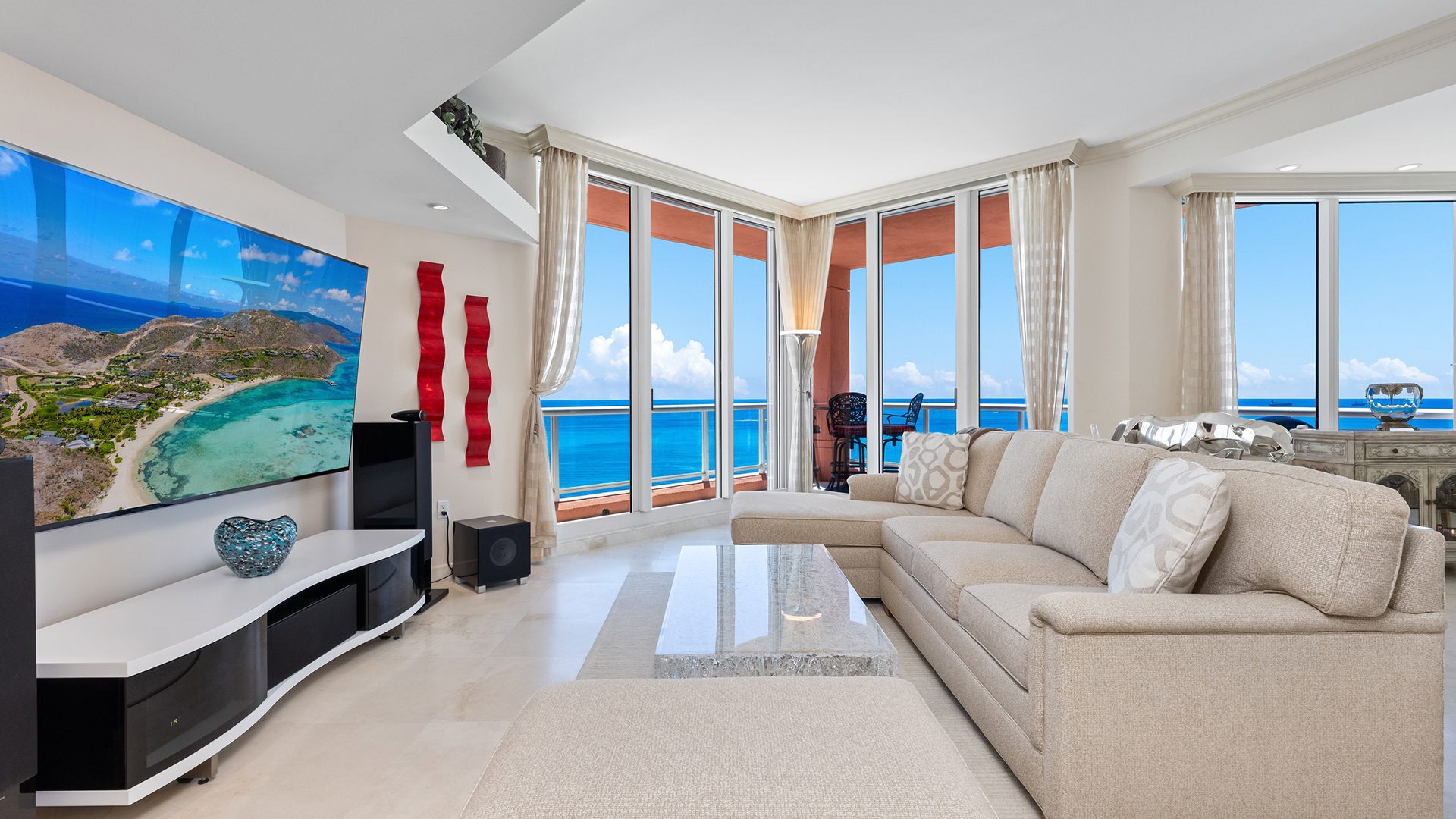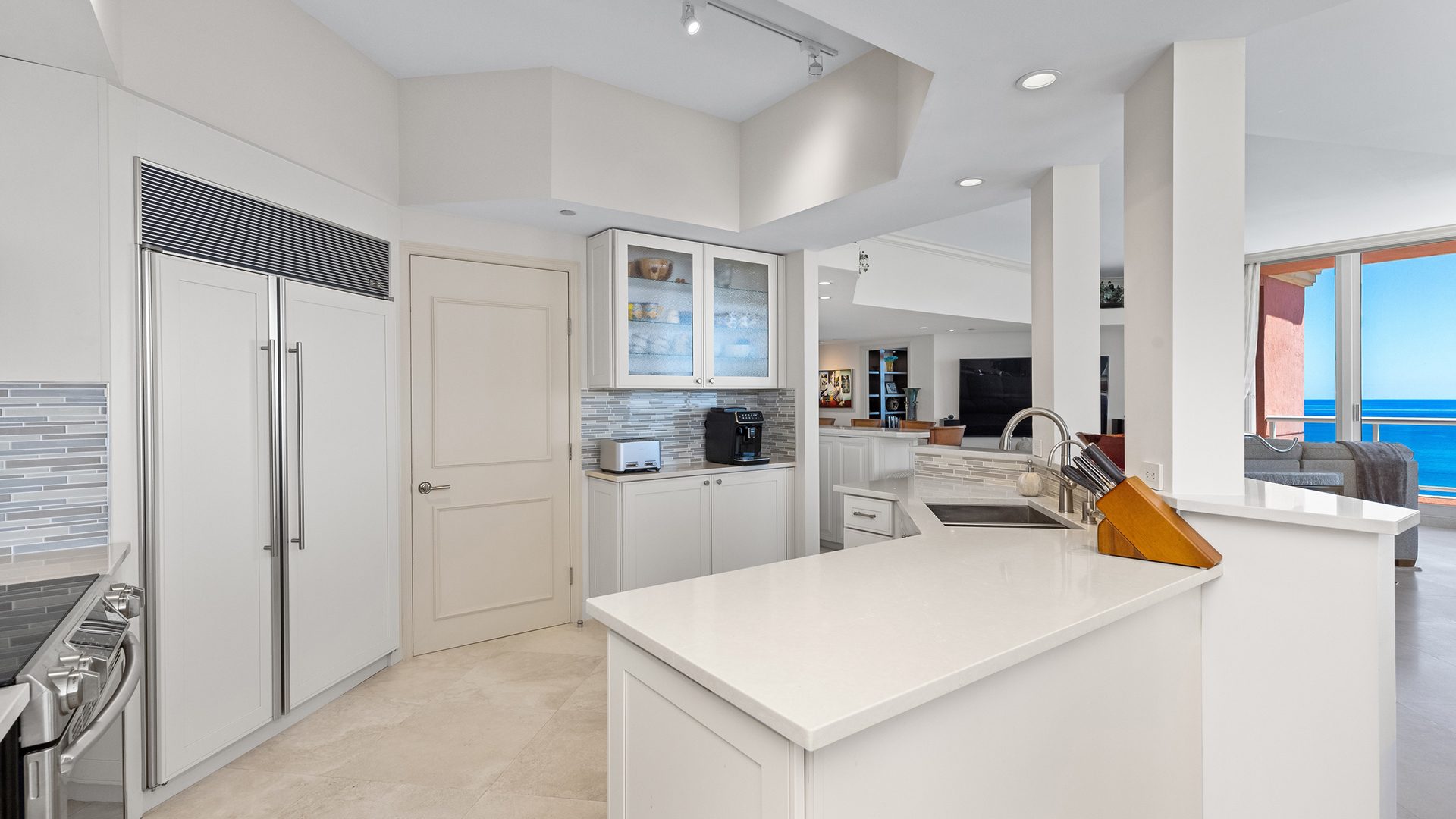 Floating high above the Atlantic on the 24th floor, this stunning sub-penthouse residence at The Palms Tower Two offers panoramic ocean views and a lifestyle defined by sophistication and serenity. Featuring the desirable East Florence floor plan, this beautifully furnished 3-bedroom, 2.5-bath condo is bathed in natural light from walls of windows that frame the vibrant colors of the sea and sky.