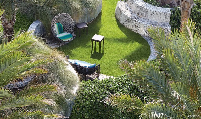 • Landscaped Grounds at Canyon Ranch Living, Luxury Oceanfront Condominiums Located at 6799-6899 Collins Avenue, Miami Beach, FL 33141