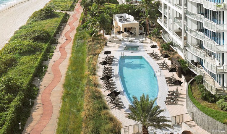 • View of the Pool at Canyon Ranch Living, Luxury Oceanfront Condominiums Located at 6799-6899 Collins Avenue, Miami Beach, FL 33141