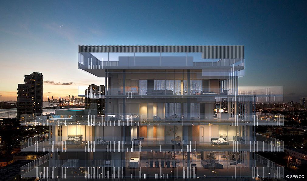 Designed by renowned architect Rene Gonzalez, the lavish condos in Glass feature astounding full-floor layouts. Each condominium features sprawling terraces and floor-to-ceiling, super-clear impact glass, providing 360-degree views of the Atlantic Ocean, Miami Beach, Biscayne Bay and downtown.
