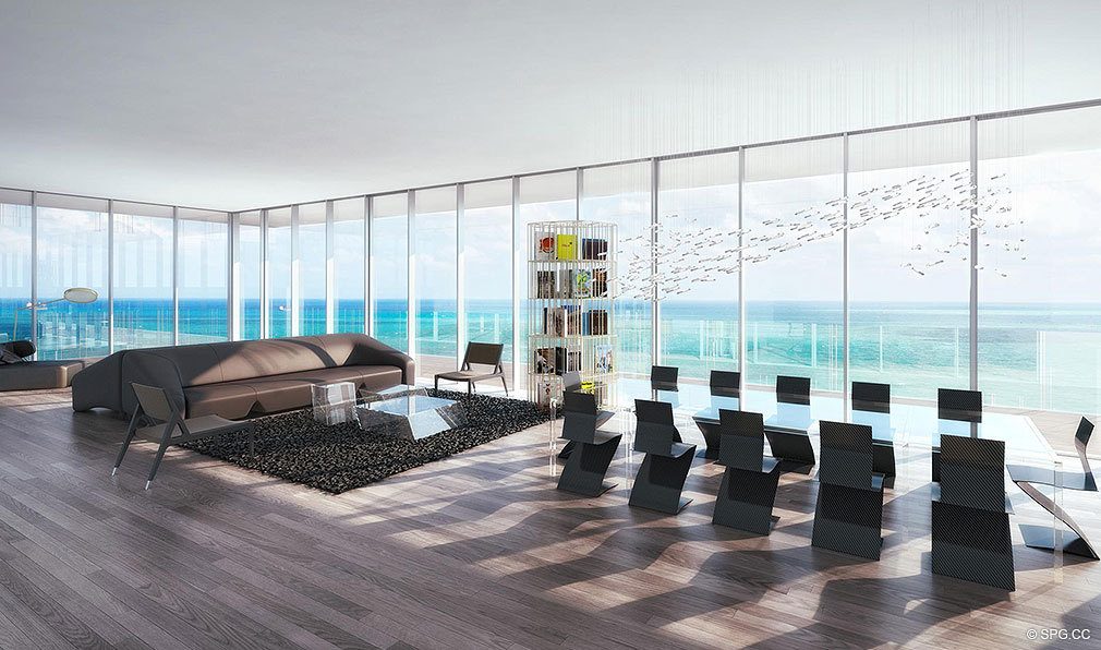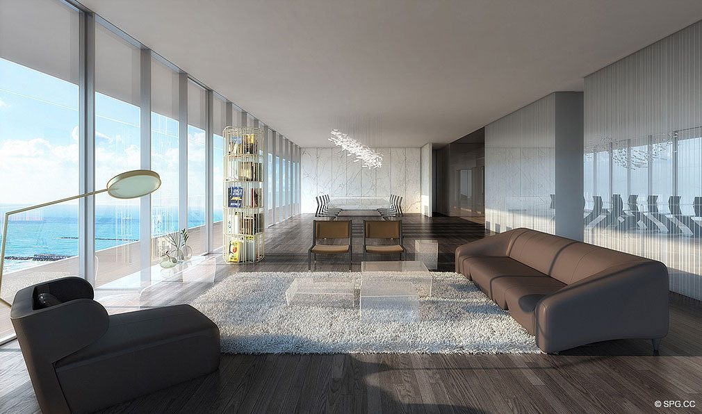 • Living Room at Glass South Beach, Luxury Seaside Condos Located at 120 Ocean Dr, Miami Beach, FL 33139