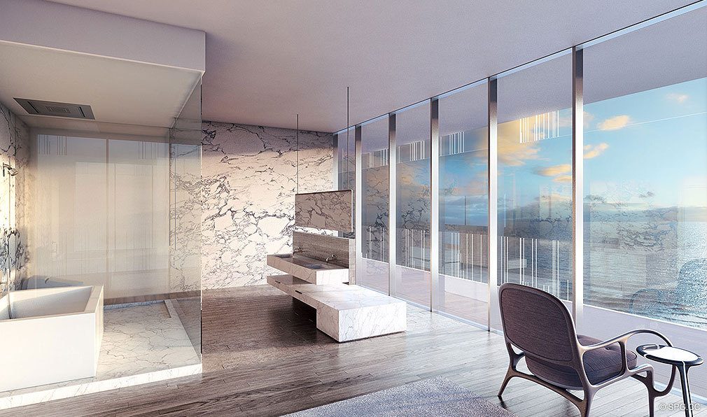 • Master Bathroom at Glass South Beach, Luxury Seaside Condos Located at 120 Ocean Dr, Miami Beach, FL 33139