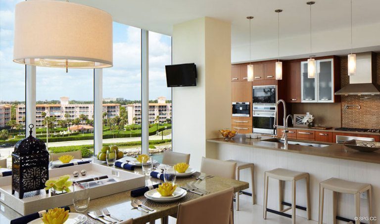 The three- to five-bedroom oceanfront condos in One Thousand Ocean offer two- or three-car garages, summer kitchens, high-end appliances, spacious terraces and private elevator landings. Featuring 10-foot ceilings and floor-to-ceiling glass, 1000 Ocean condos afford panoramic views of the ocean, Boca Raton Inlet and city skyline.