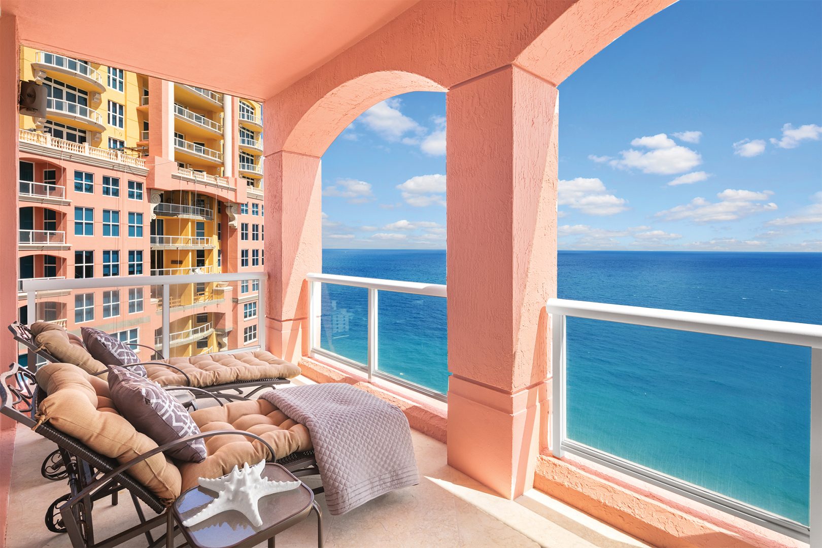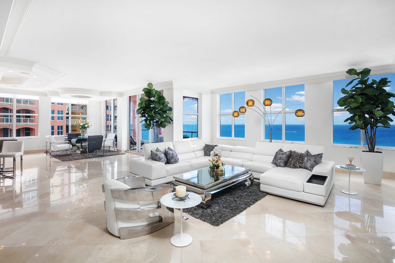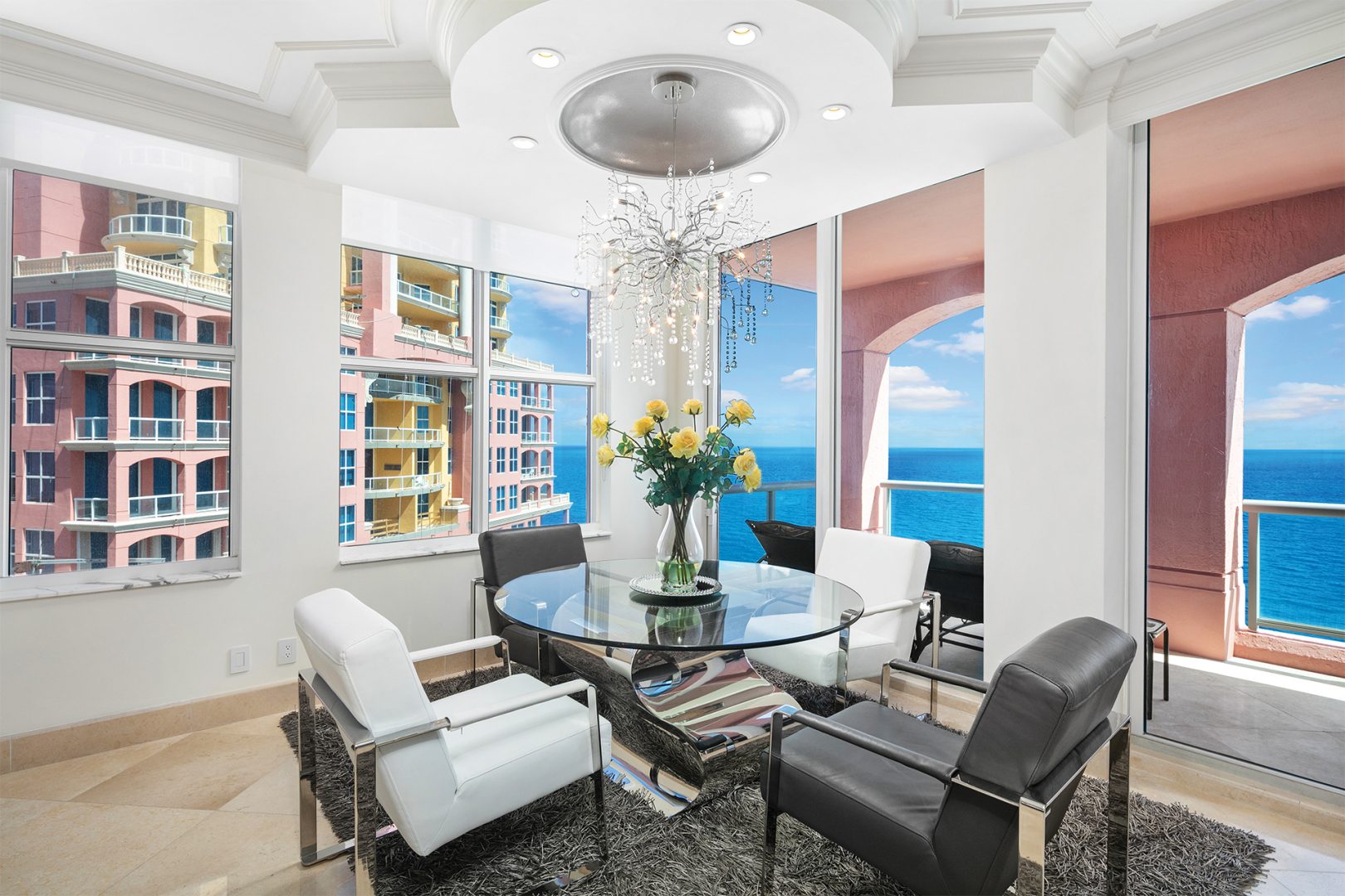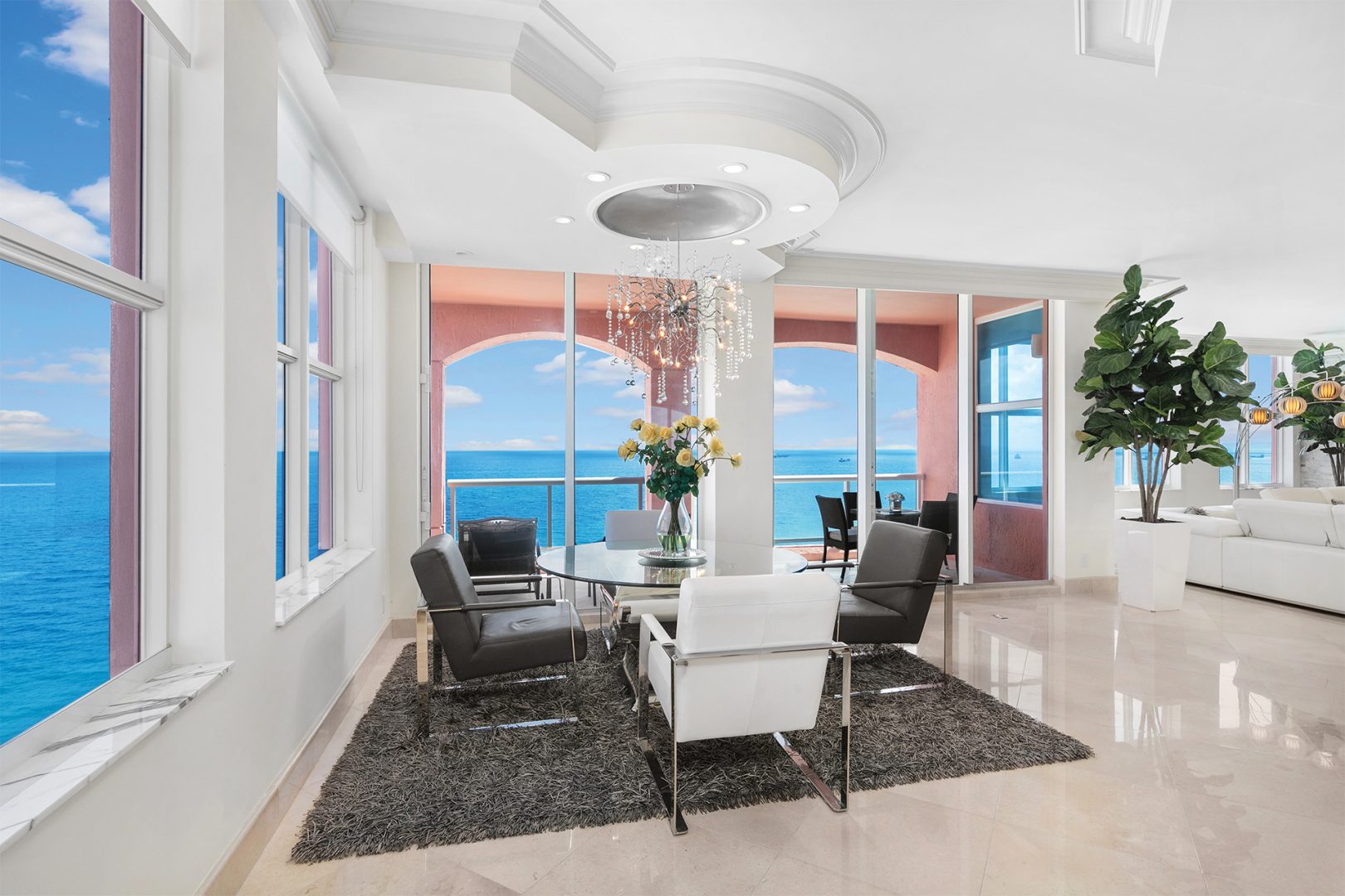 The residence is located at The Palms, Ft. Lauderdale’s most elegant oceanfront building located directly on 450 feet of pristine beach, giving residents unequalled privacy, gated security, and service. A pampered lifestyle awaits you: 24-hour valet parking, full beach and pool service, a state-of-the art fitness facility, racquetball, squash, and tennis. Extensive recreational and social spaces offer fabulous opportunities for entertaining. All of these amenities and more in a low-density, beachfront, Italian-inspired enclave containing 2 towers, with an average of only 90 residences per tower and 7 elegant oceanfront villas.