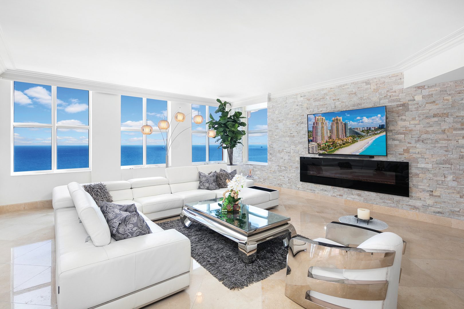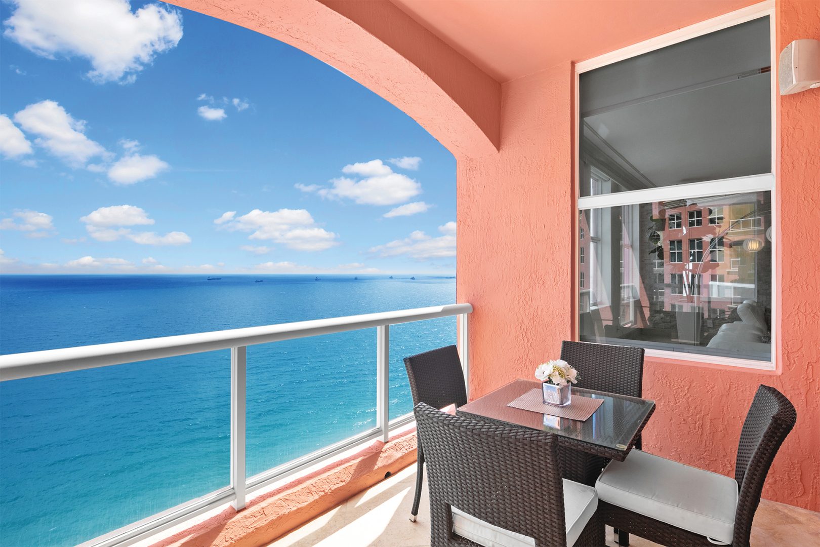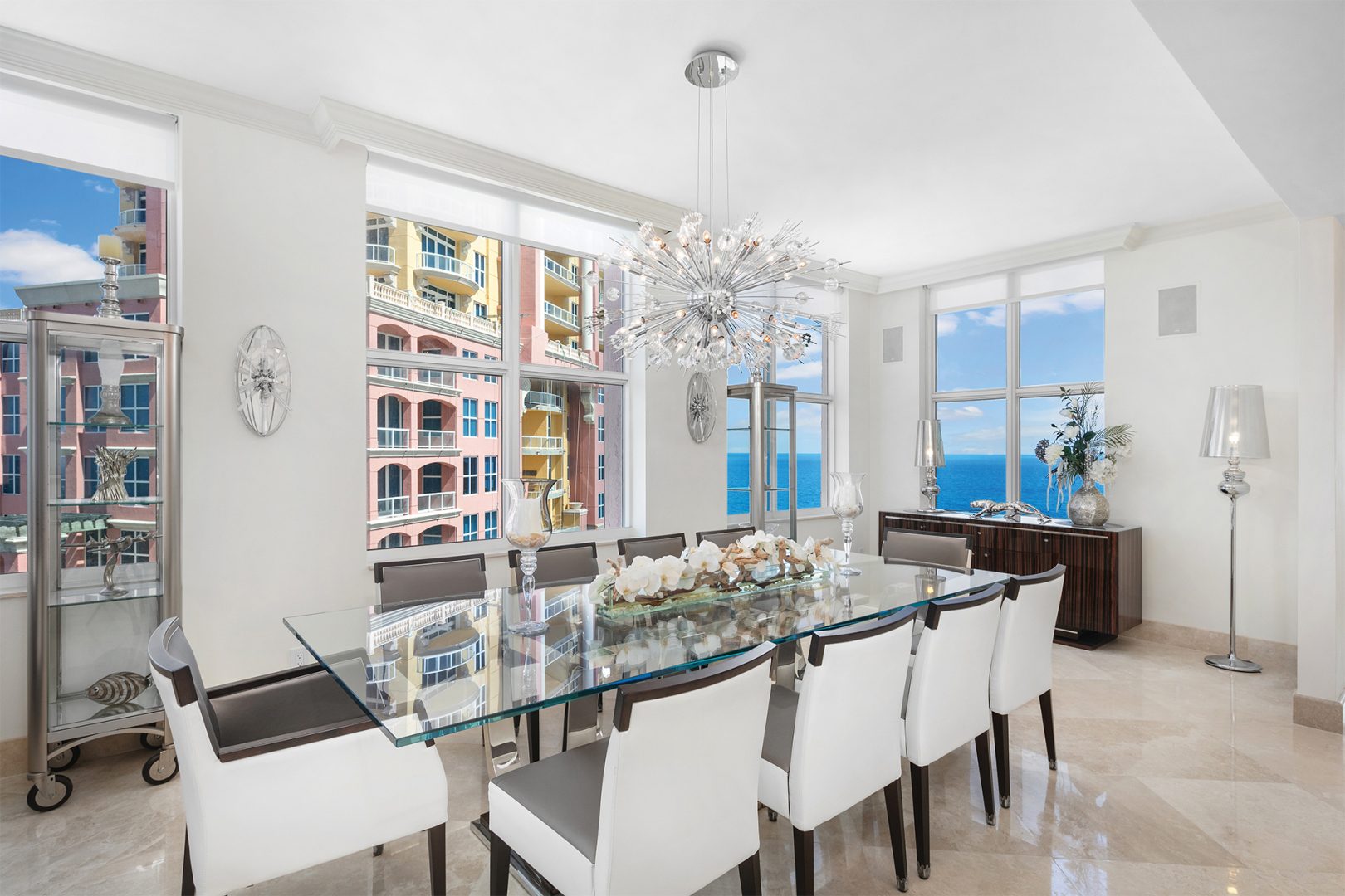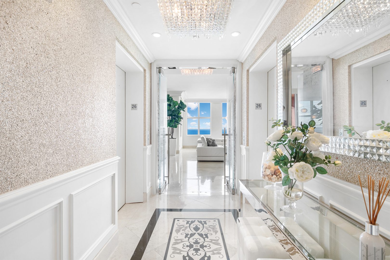The residence is located at The Palms, Ft. Lauderdale’s most elegant oceanfront building located directly on 450 feet of pristine beach, giving residents unequalled privacy, gated security, and service. A pampered lifestyle awaits you: 24-hour valet parking, full beach and pool service, a state-of-the art fitness facility, racquetball, squash, and tennis. Extensive recreational and social spaces offer fabulous opportunities for entertaining. All of these amenities and more in a low-density, beachfront, Italian-inspired enclave containing 2 towers, with an average of only 90 residences per tower and 7 elegant oceanfront villas.