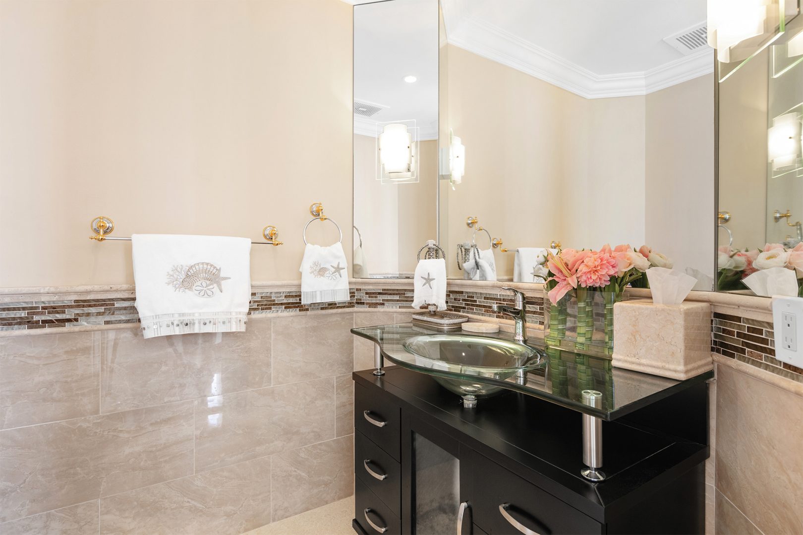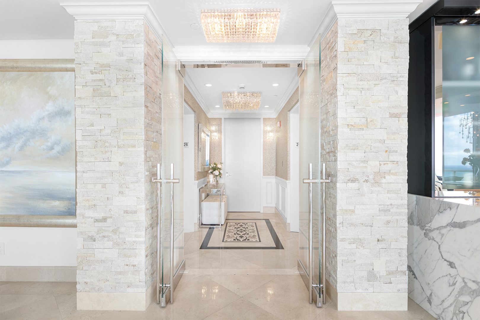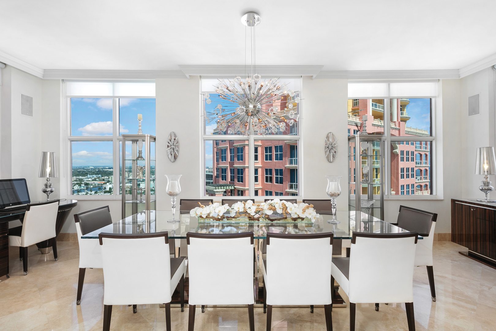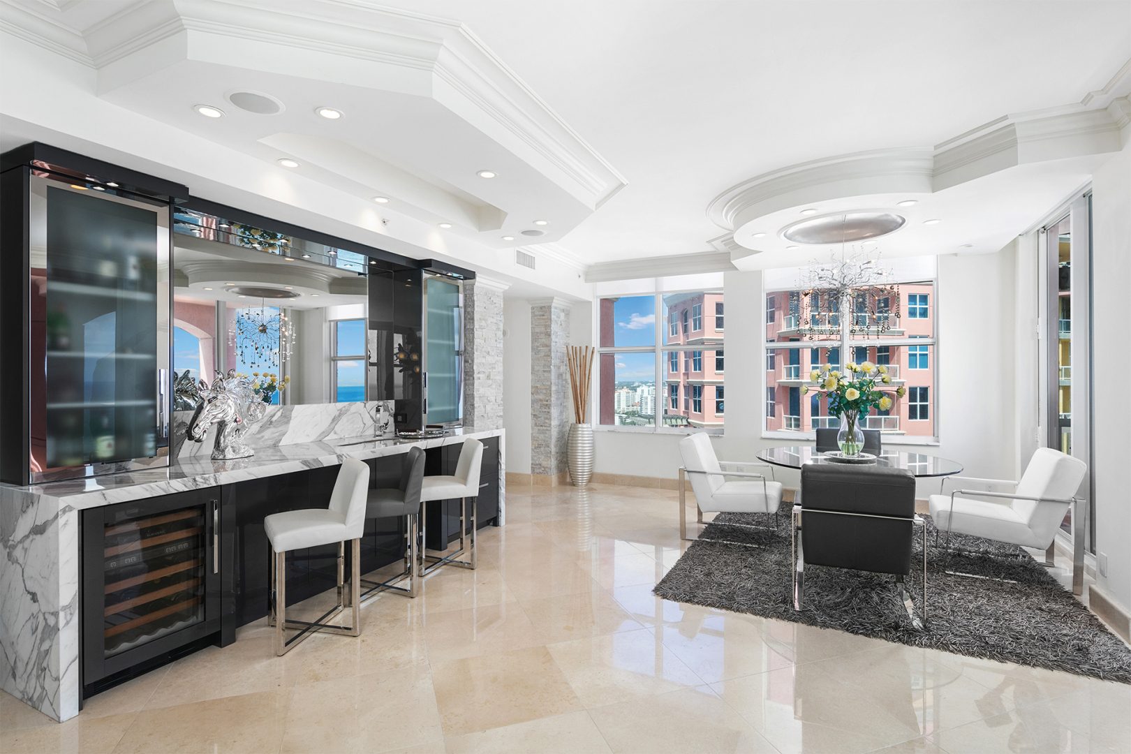 The residence is located at The Palms, Ft. Lauderdale’s most elegant oceanfront building located directly on 450 feet of pristine beach, giving residents unequalled privacy, gated security, and service. A pampered lifestyle awaits you: 24-hour valet parking, full beach and pool service, a state-of-the art fitness facility, racquetball, squash, and tennis. Extensive recreational and social spaces offer fabulous opportunities for entertaining. All of these amenities and more in a low-density, beachfront, Italian-inspired enclave containing 2 towers, with an average of only 90 residences per tower and 7 elegant oceanfront villas.