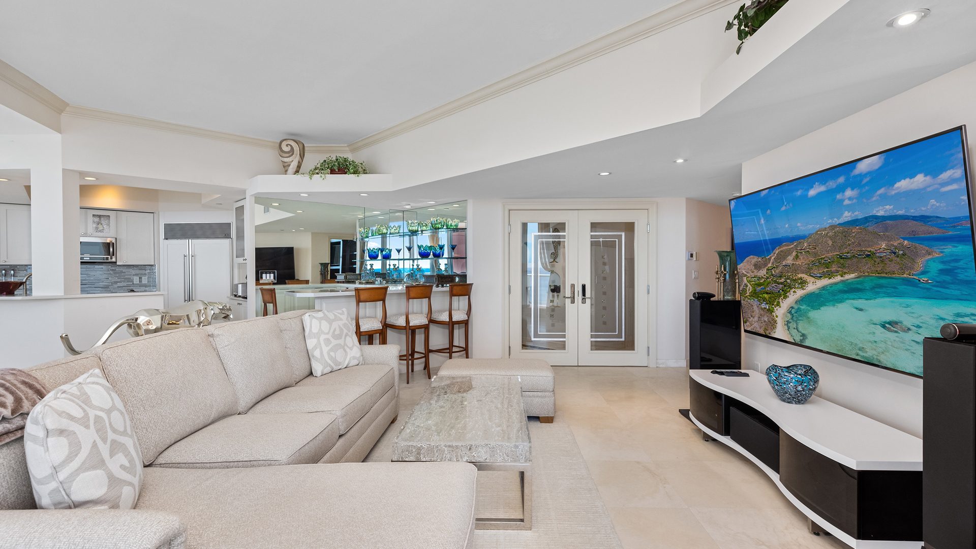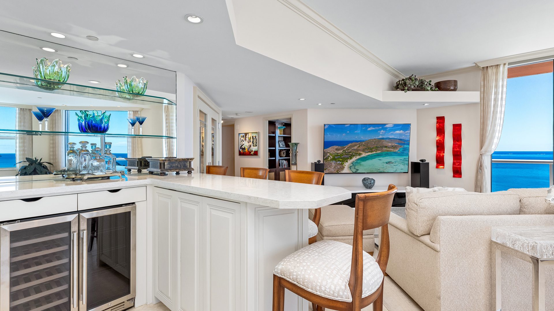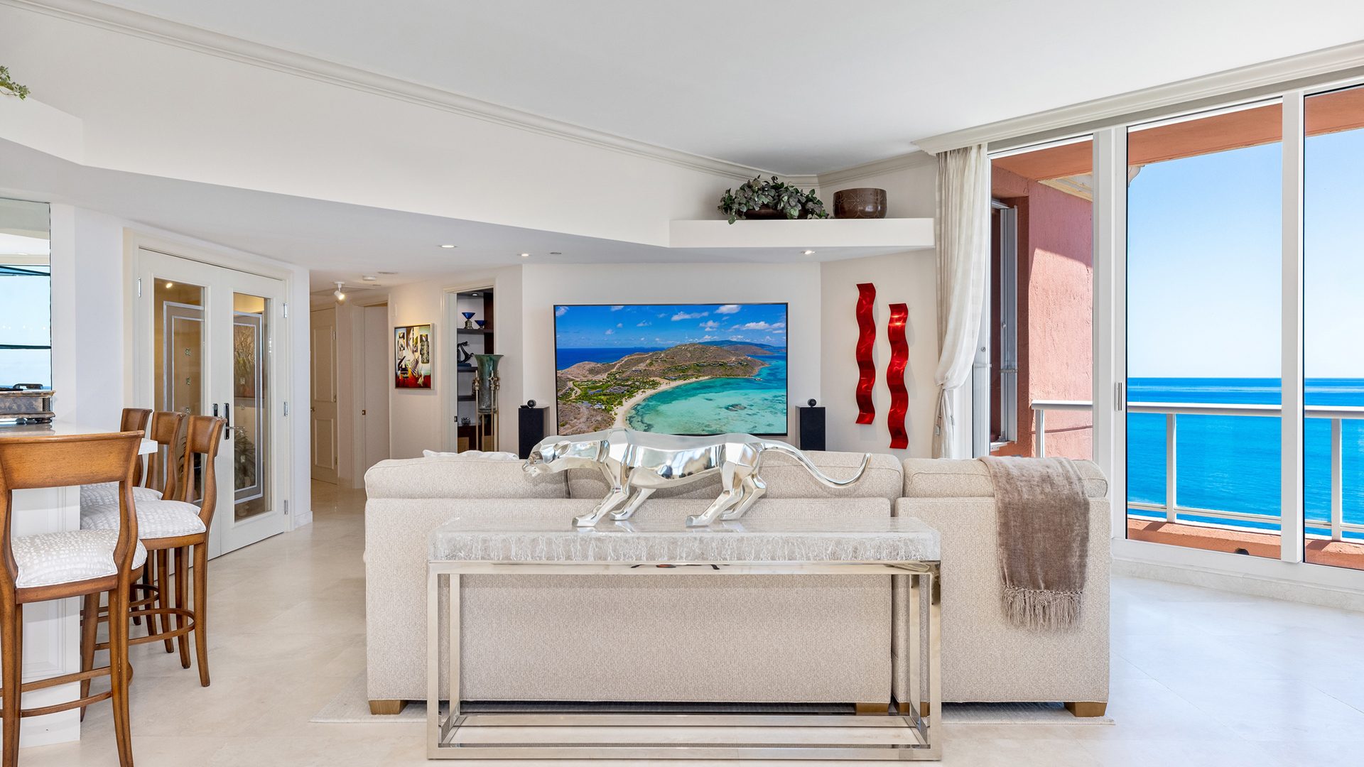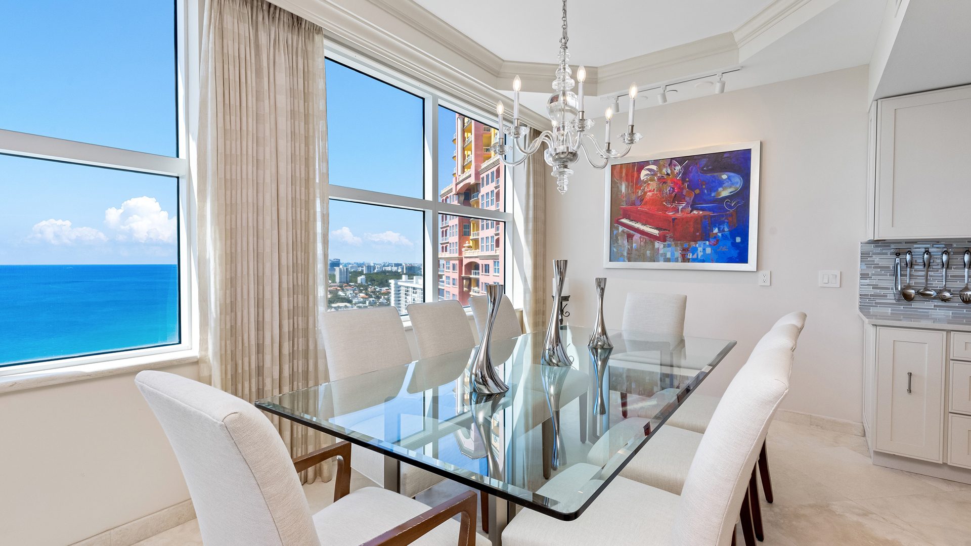 Step into an open-concept living space where elegance meets comfort. The great room flows seamlessly into the dining area and designer kitchen, ideal for entertaining or relaxing while taking in the breathtaking ocean vistas. Two private terraces invite you to enjoy spectacular sunrises over the water and glowing sunsets over the city — the perfect backdrop for South Florida living.