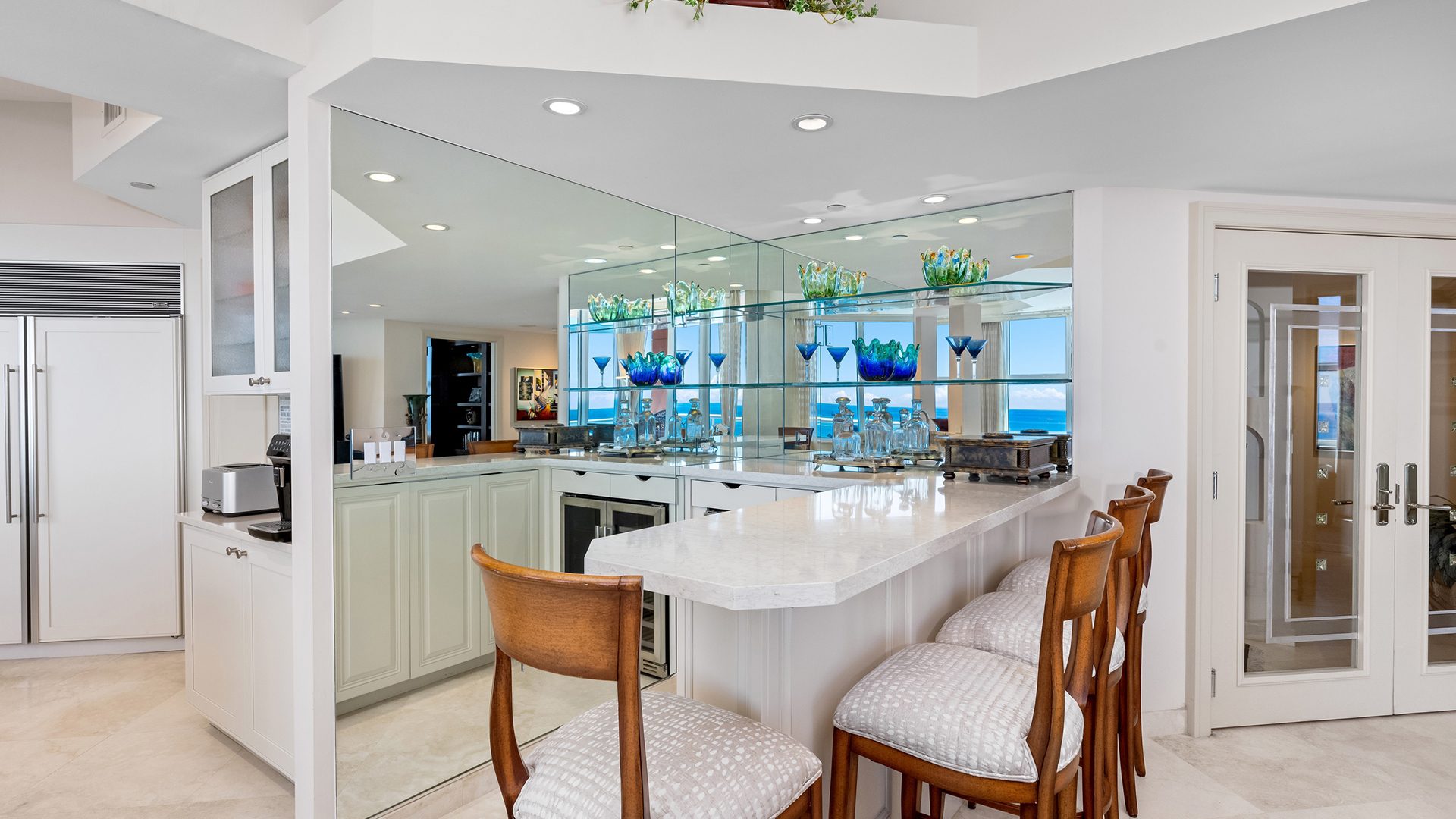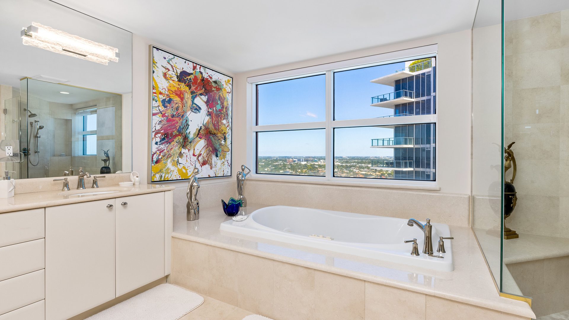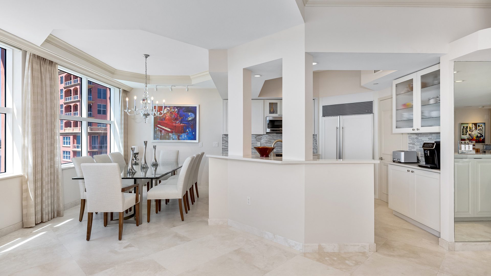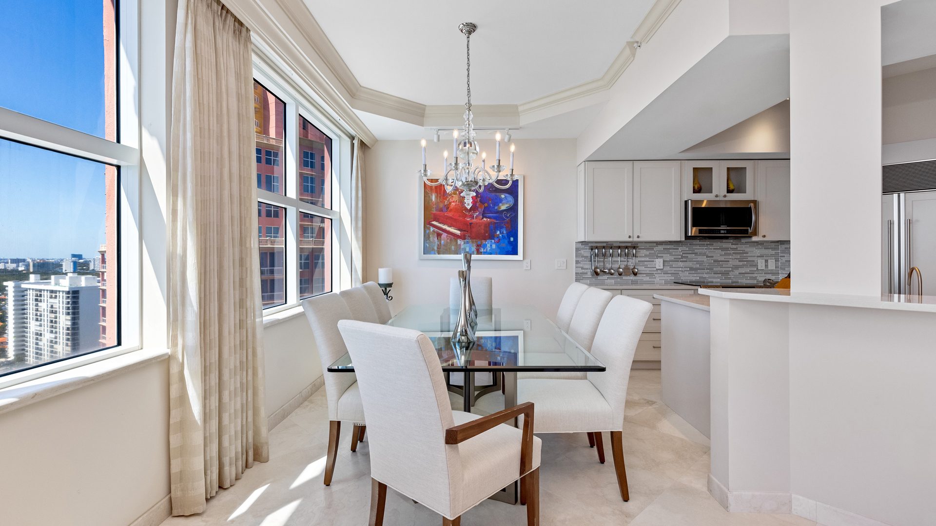Step into an open-concept living space where elegance meets comfort. The great room flows seamlessly into the dining area and designer kitchen, ideal for entertaining or relaxing while taking in the breathtaking ocean vistas. Two private terraces invite you to enjoy spectacular sunrises over the water and glowing sunsets over the city — the perfect backdrop for South Florida living.