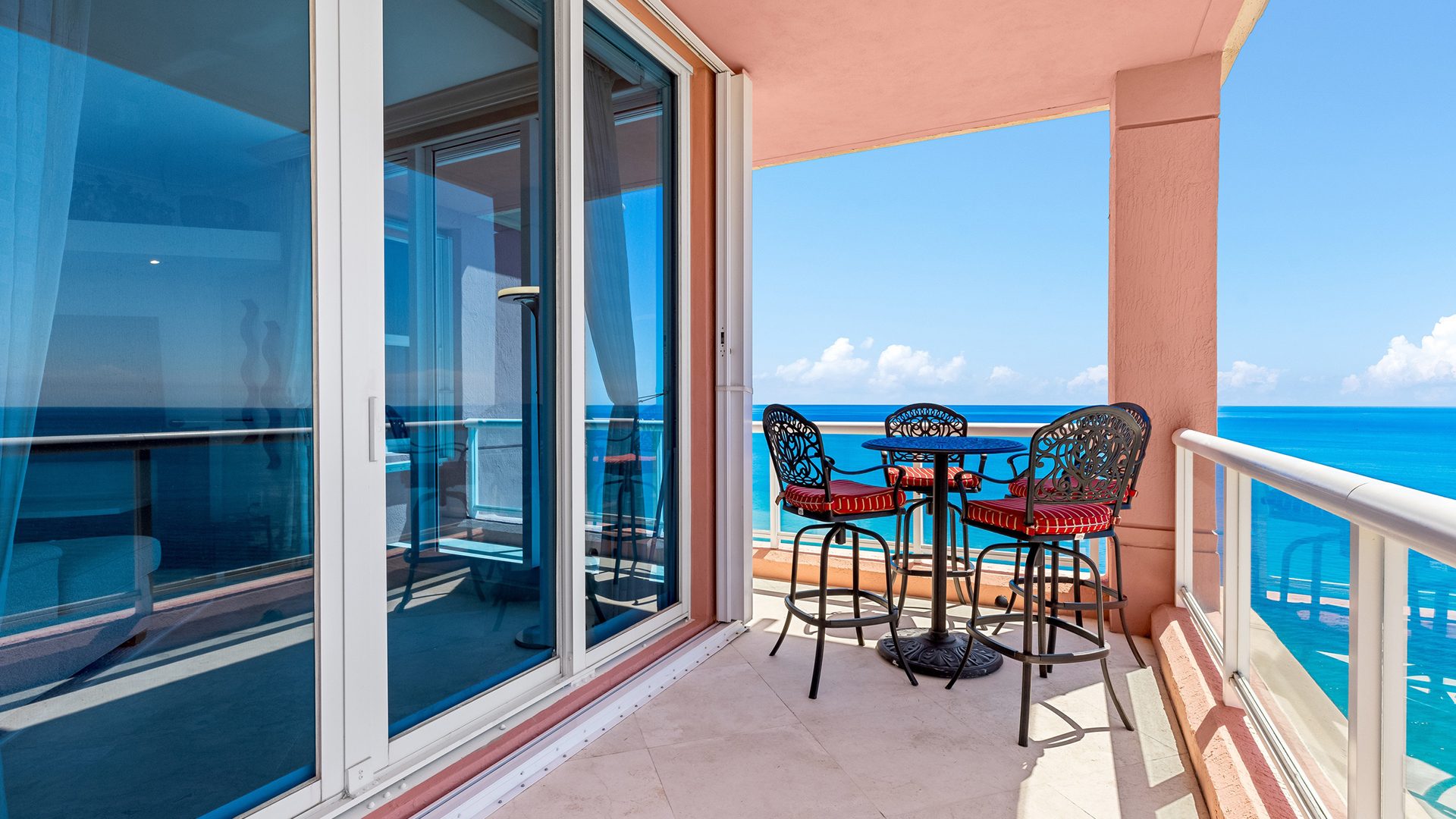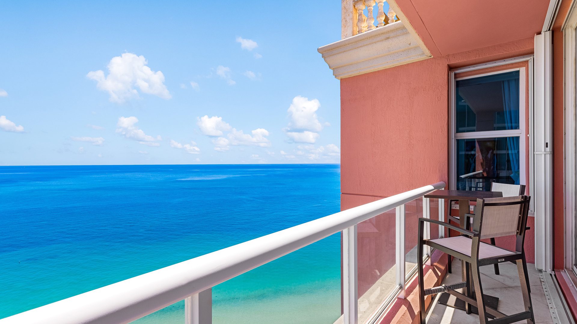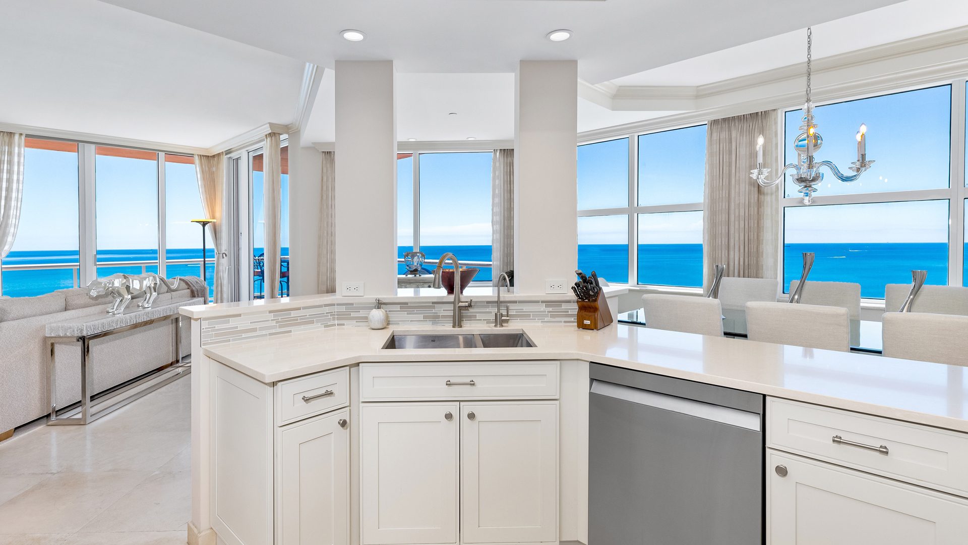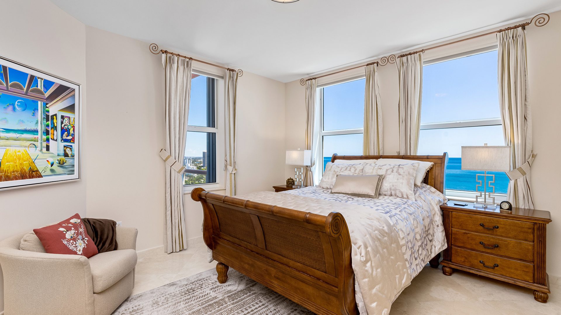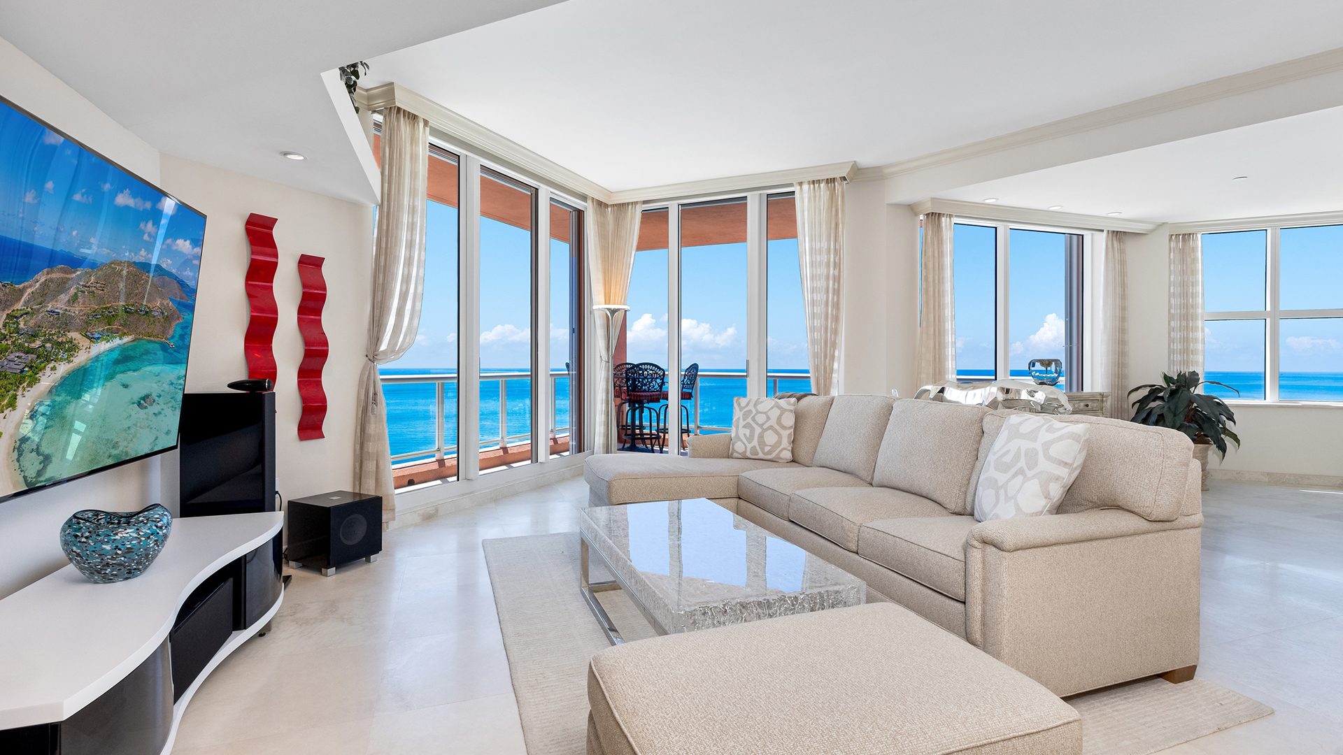 Floating high above the Atlantic on the 24th floor, this stunning sub-penthouse residence at The Palms Tower Two offers panoramic ocean views and a lifestyle defined by sophistication and serenity. Featuring the desirable East Florence floor plan, this beautifully furnished 3-bedroom, 2.5-bath condo is bathed in natural light from walls of windows that frame the vibrant colors of the sea and sky.