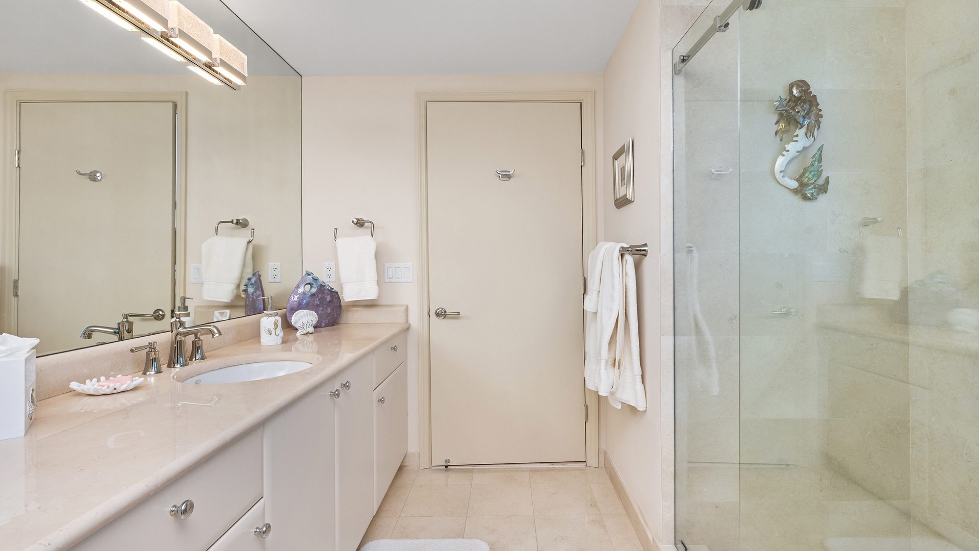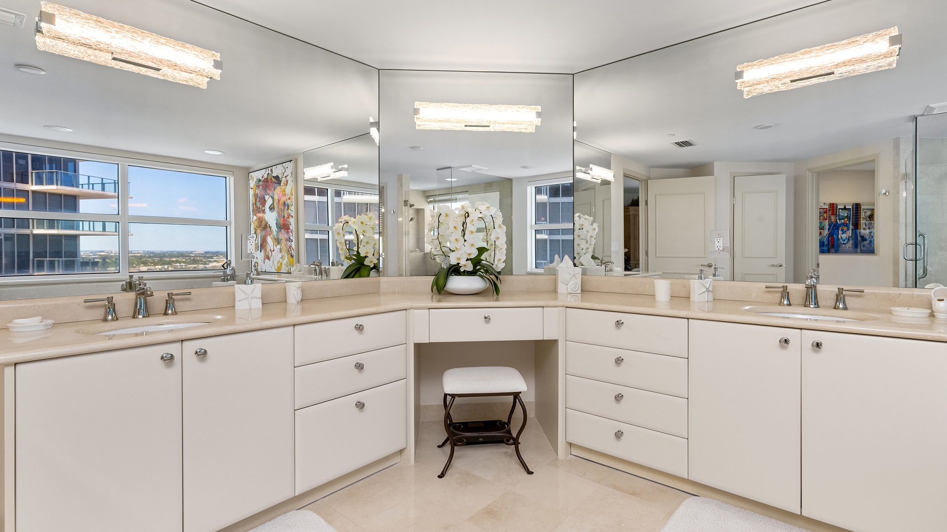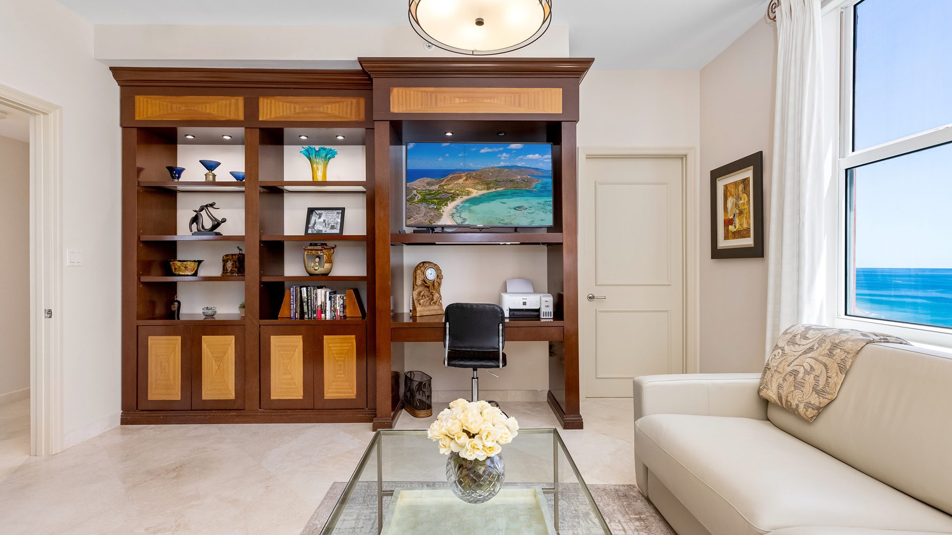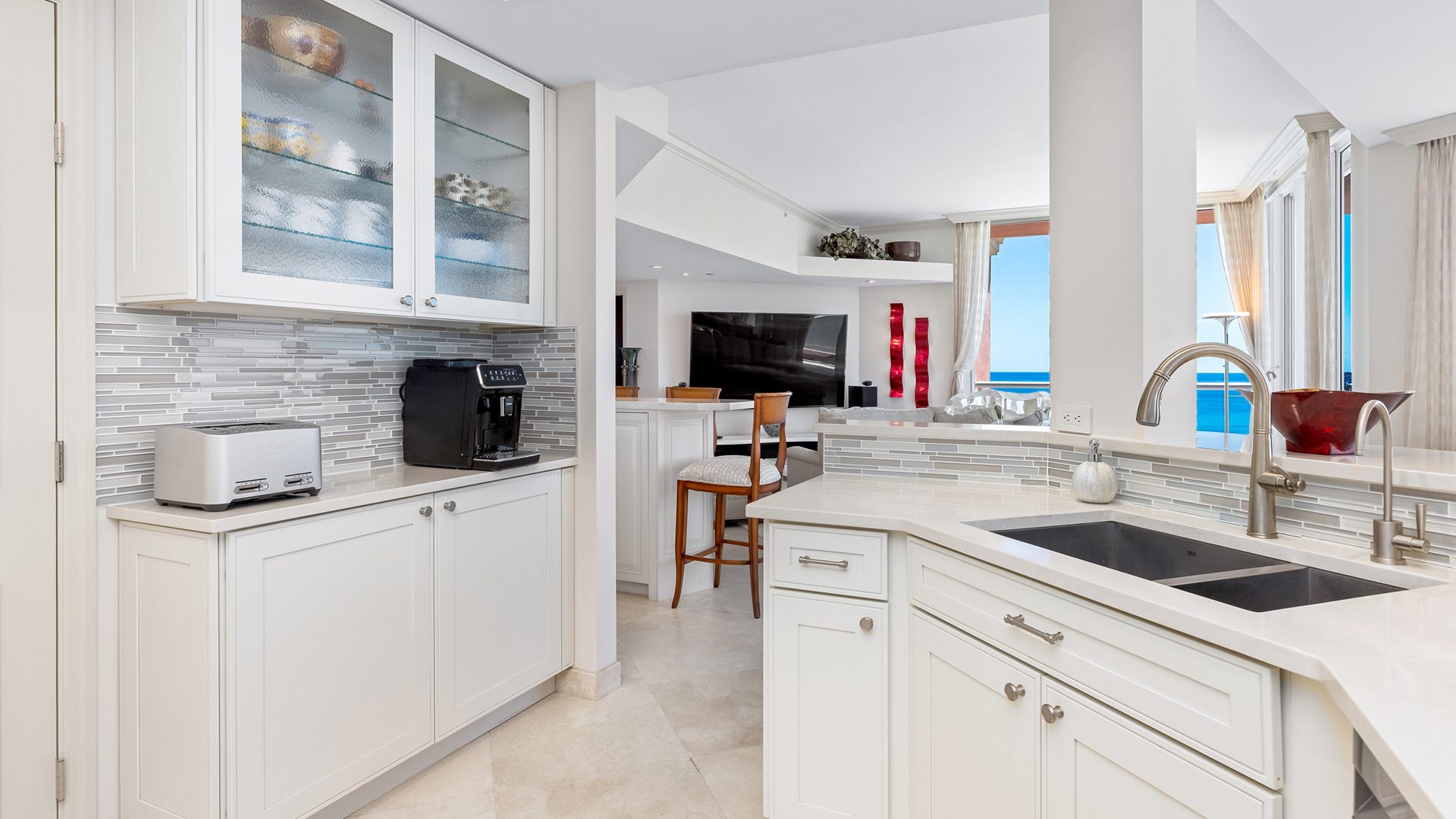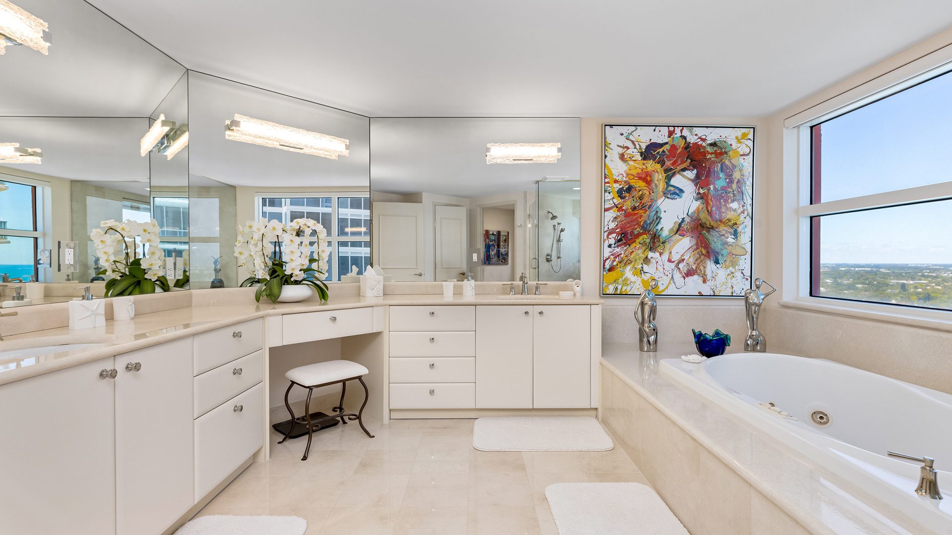 Floating high above the Atlantic on the 24th floor, this stunning sub-penthouse residence at The Palms Tower Two offers panoramic ocean views and a lifestyle defined by sophistication and serenity. Featuring the desirable East Florence floor plan, this beautifully furnished 3-bedroom, 2.5-bath condo is bathed in natural light from walls of windows that frame the vibrant colors of the sea and sky.